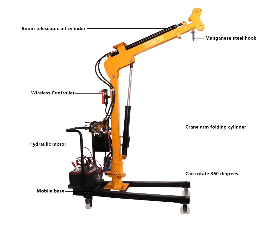2. Powered by the hydraulic system, the hydraulic crane can achieve a larger lifting weight and a longer lifting distance.